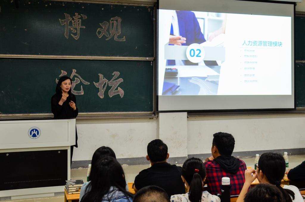 论坛伊始,刘凌敏老师从自身经历出发,介绍了山东省工业设备安装集团在市场经济浪潮中顺势而为,由国有企业转变为民营企业的发展史。她认为现如今同学们应抓住时代的契机,积极谋求自己未来的职业发展。接下来,刘凌敏老师与同学们分享了自己的职业经验,她梳理了人力资源管理的六大模块,让同学们对现代人力资源管理体系有了大致的了解。随后,她提出了招聘过程中最重要的两个问题:选人看什么、如何识人。刘凌敏老师频频引用实例,生动地为同学们做出了分析和解答。在活动中,她指出大学生应提前做好职业规划,明晰自己的求职动机,并朝着这个方向不断努力。