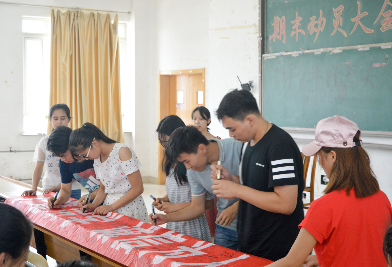 最后,各班同学在“严谨治学,诚信为人”的横幅上签名并在《诚信考试承诺书》上签名。考评委助理带领全场同学庄严宣誓。在同学们铿锵有力的宣誓声中,本次大会圆满落下帷幕。