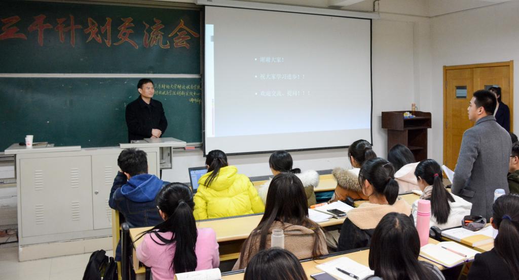 主办,院学生会创新实践中心调研部承办。交流会由学院财政系主任赵宝廷老师担任主讲人,新疆教育厅内派管理老师玛依努尔•阿不里米提、2016级和2017级“三千计划”社会实践团队队长以及来自新疆的部分同学参加了本次交流会。