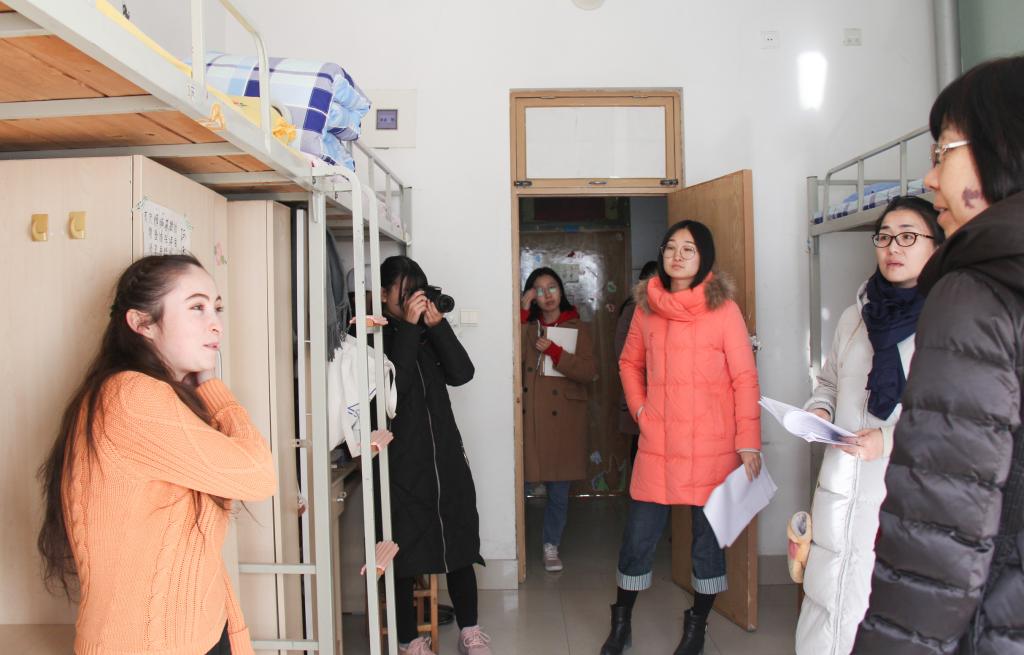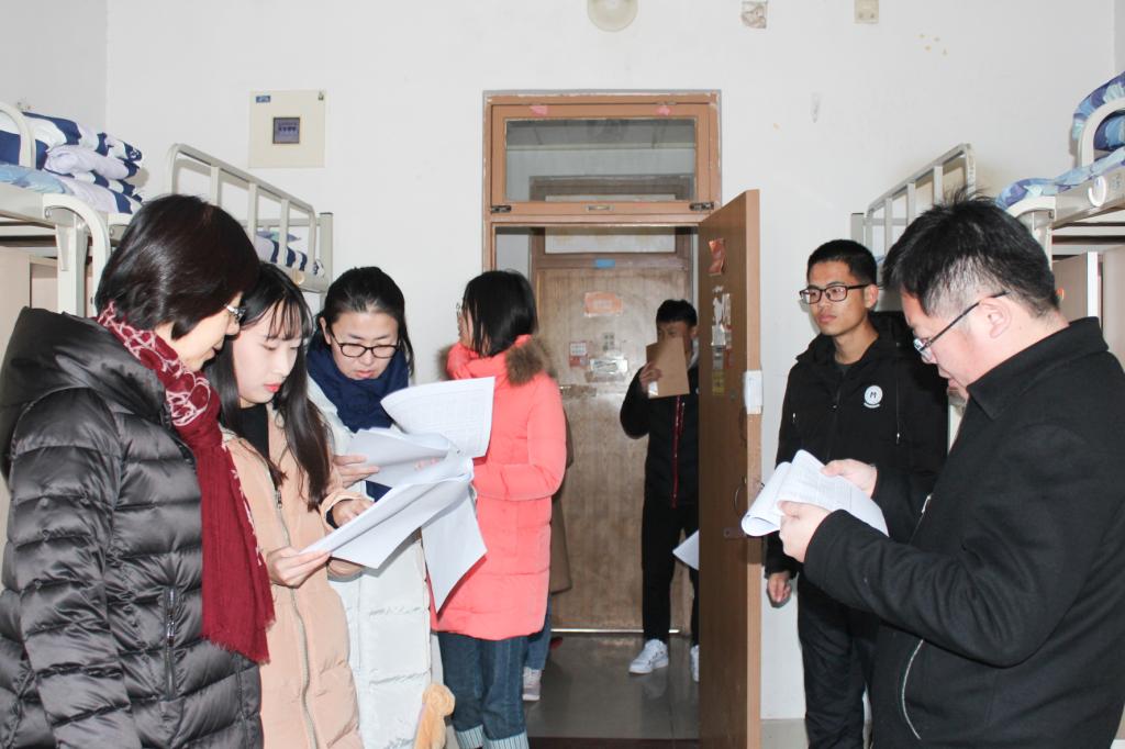 领导老师们首先来到了男生一号公寓楼。在抽查的过程中,老师亲切问候了同学们的宿舍日常生活,并详细了解了宿舍供暖状况、水电使用情况、公共物品防护和饮食健康等问题。温情的话语回荡在学生寝室,师生交流气氛轻松融洽。同时,老师们也细心地指出,学生在内务整理方面存在着一些问题:宿舍内物品归置不到位、通风不足出现异味、使用不安全座椅等等。梅书记特别强调,如果发现卫生间出现垃圾堆积、鼠患等情况,同学们要第一时间上报给学校宿管科。学校会尽快解决这些问题,以确保同学们拥有良好的宿舍生活环境。