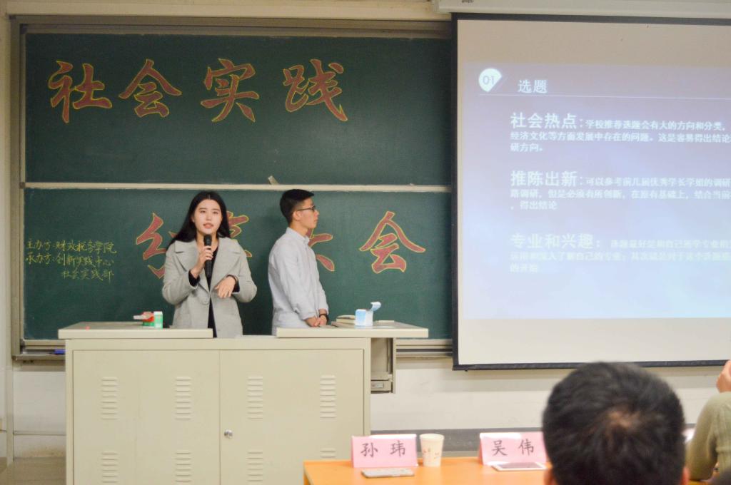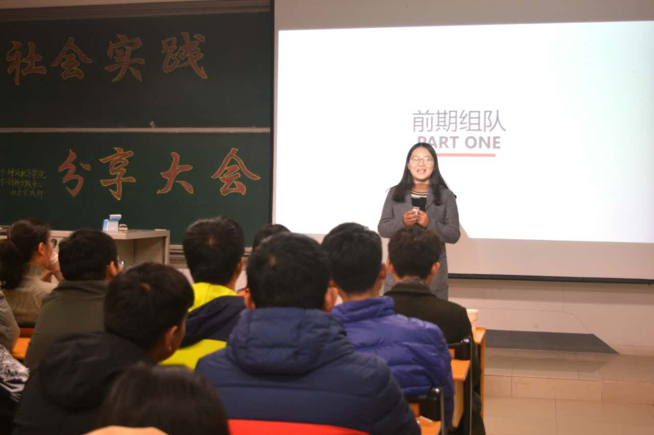 主办,学生会创新实践中心社会实践部承办。2015级辅导员程佳老师出席了此次大会。分享会还邀请了参与社会实践的五位优秀学生代表:宋玉丹、王雪萍、刘东林、吴伟和孙玮。2017级部分学生聆听了此次大会。