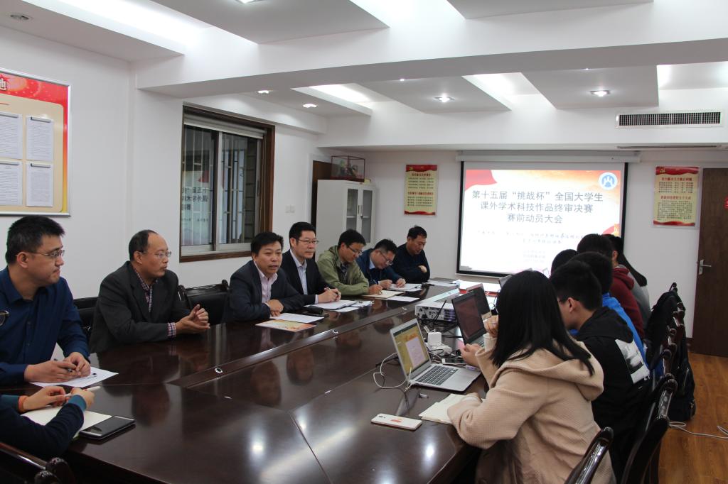 10月24日,第十五届“挑战杯”全国大学生课外学术科技作品终审决赛赛前动员大会于舜耕校区樱桃影视