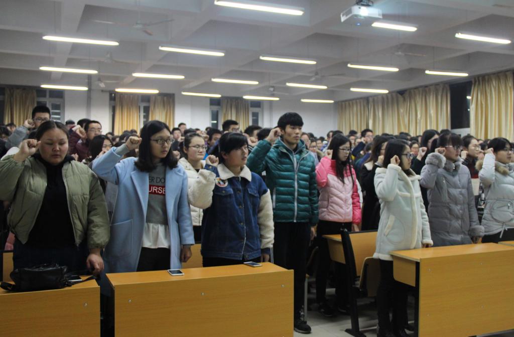 主办,学生会秘书处与自律会考评部联合承办。2016级辅导员曹同锋老师出席此次大会,2016级全体学生参加此次大会。此次大会目的在于改善学习氛围,使同学们端正态度,积极备考,诚信应考。