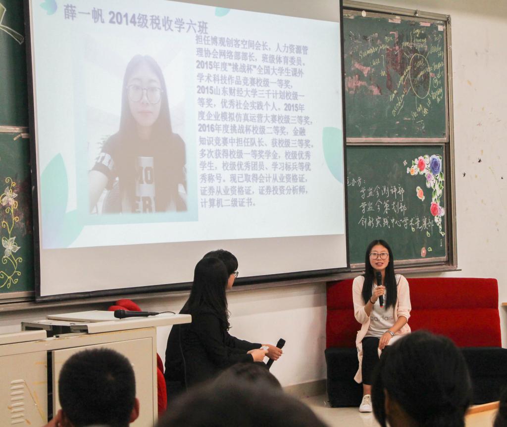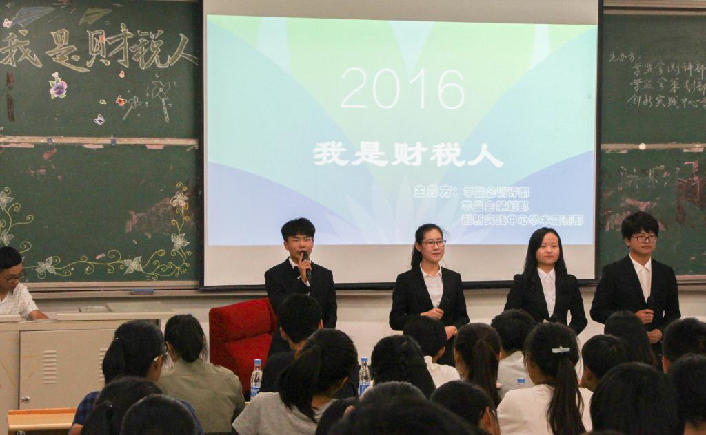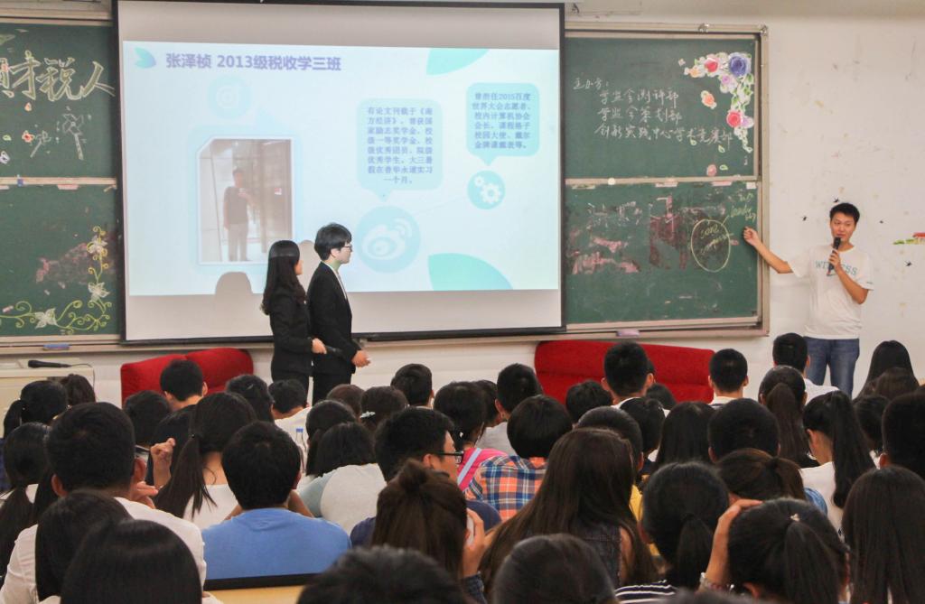 “我是财税人”经验交流会于圣井校区敏行楼圆满举行。讲座邀请了2013级学生代表张泽祯,2014级学生代表范佳慧、薛一帆以及2015级篮球队、辩论协会、大学生社团代表。2015届学生会常委团出席了此次交流会。此次交流会由樱桃影视