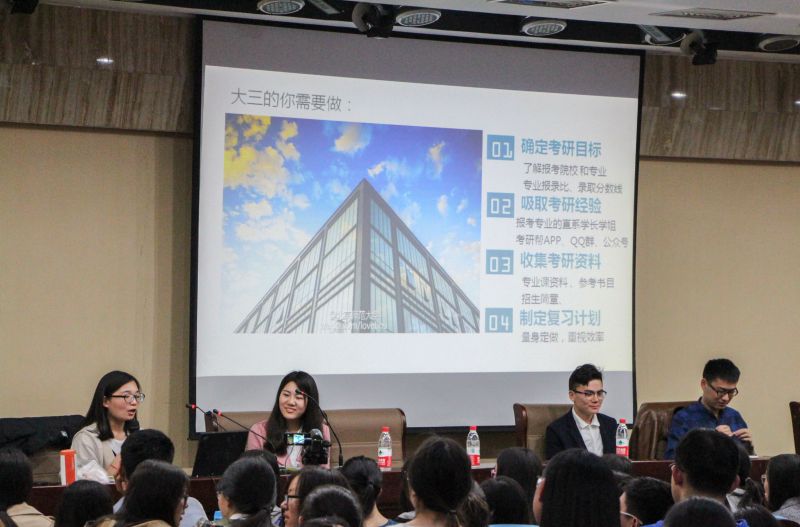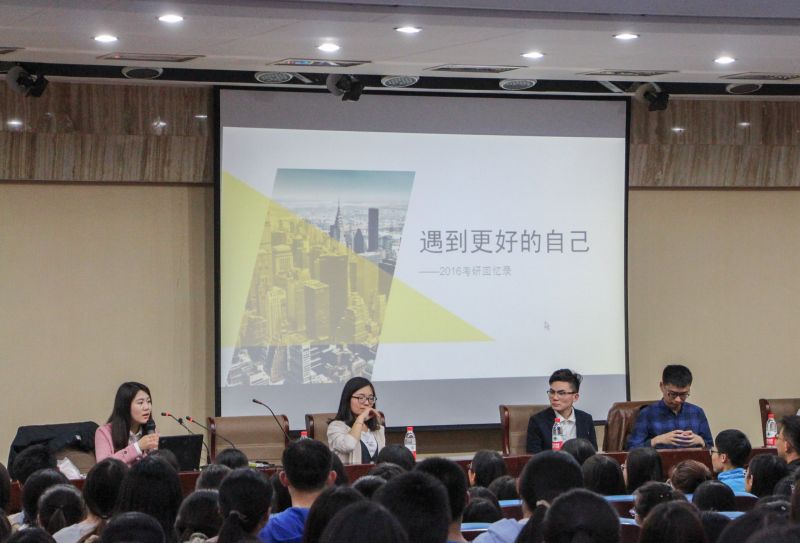 考取北京大学金融信息服务专业的罗昶用幽默诙谐的语言分享了自己考研过程中所注意的一些事项,主要有:要有很强的执行力和实地调研能力并且能够与别人交流;收集处理信息,形成自己的观点;他告诫同学们一定要有一个能让自己始终奋斗下去的信条,支撑着自己坚持下去,度过漫长的考研过程。他还分享了自己考研过程中的小窍门,比如说用音乐来隔离外界的干扰,使自己全神贯注地投入到学习中。