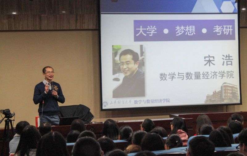 随后宋浩副教授讲解了财经类数学学习的特点与方法,并将学硕与专硕数学进行对比分析,引出考研数学成功的复习方略。他提醒考研的同学要做好充分准备,把握好正确的考研方向,用往届优秀毕业生的考研实例来激励同学们要有梦想、要有付出。