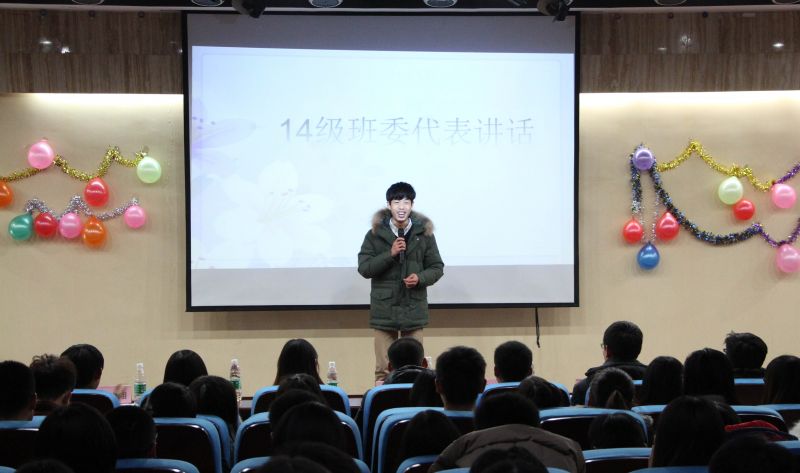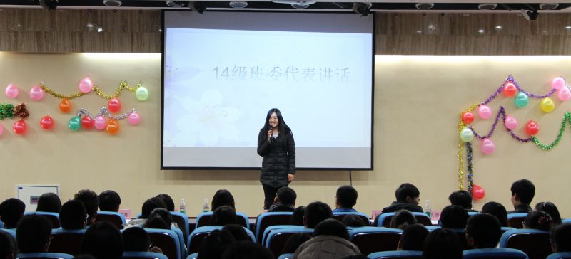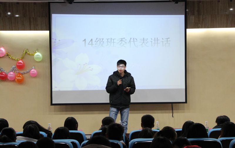 大会伊始,一段由策划部助理倾情奉献的舞蹈直接带动了全场的气氛。会议正式进入第一个环节,由2014级优秀班委代表讲述任职经历。2014级班长代表赵国辉以幽默诙谐的语言讲述了自己的班长经历,并就管理班级、带领班委团队、做好学生与老师间的桥梁等方面进行细致讲解,最后鼓励全体班委努力做好学风建设工作,争创三优班集体。2014级团支书代表宋雅雯则劝勉大家要端正态度,摆正位置,协调好班委的工作,协助班长更好地服务班级。2014级副班长代表杨永禄希望大家干好本职工作,并以“不忘初心,方得始终”勉励在座的全体班委。2014级学习委员代表于滢就如何做好学委本职工作问题作了详细的阐述。