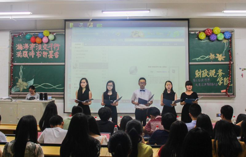在读书节系列活动中,税收学六班实力出演经典名著《赵氏孤儿》,斩获话剧比赛一等奖。税收学三班凭借热血澎湃的诗文朗诵《少年中国说》稳夺诗歌朗诵比赛冠军。财政学二班凭借深厚的绘画功底,在通讯社主办的宣传画报评展中一举夺魁。在女生部主办的职业风采大赛中,王鹏宇以独特的个人魅力征服评委,荣获一等奖。学生会圣井分会主席团成员给获奖集体和个人颁发获奖证书。