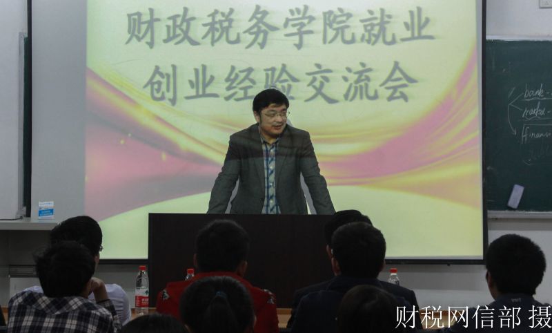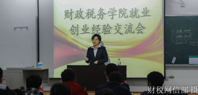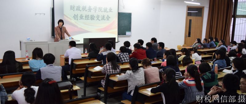 就业创业经验交流会于舜耕校区顺利召开。出席大会的领导老师有:财税学院党委书记李玉成,党委副书记梅丽萍,副院长李森教授,就业办主任、2012级辅导员曹同锋老师,2011级辅导员马静老师。交流会主讲人为金融学院优秀毕业生王倩,财税学院优秀毕业生杨国茂,姚冠楠。此次大会由梅丽萍副书记主持。2012级学生参与了本次会议。