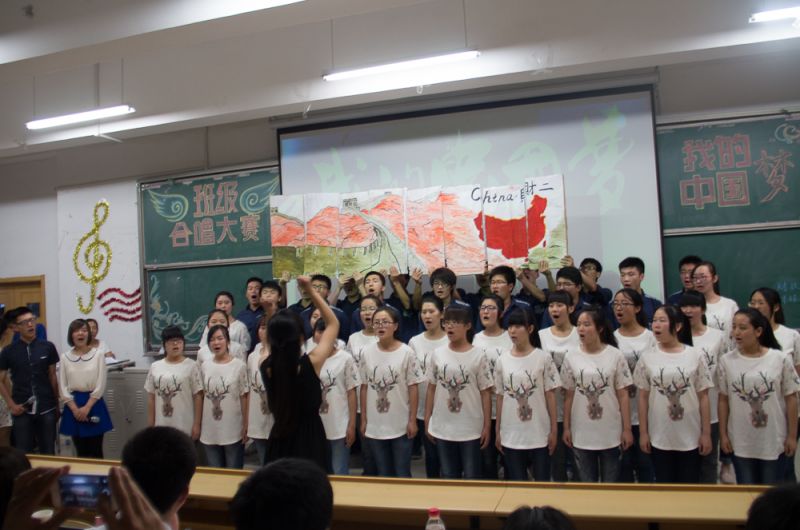 合唱比赛以收集师生美好梦想的宣传视频开场,真挚而又感人的开场祝福博得阵阵掌声。比赛正式开始,财政二班激情演唱的《国家》,国旗猎猎、歌声飘飘,恢弘大气的双面画板展示了万里长城的雄伟,表达了众位同学实现中国梦的拳拳之心。财政一班《走向复兴》弘扬了伟大的民族精神,铿锵有力的指挥令大家屏住呼吸,彩色手掌的绝妙创意将比赛推向高潮。税收三班《祖国颂》端庄的礼服令人眼前一亮,浑厚低沉的男声和清亮清脆的女声完美融合,展示出大气磅礴的气度。合唱比赛各班的节目各具特色,异彩纷呈。最终财政一班获得一等奖,税收二班、税收三班和财政五班获得二等奖。