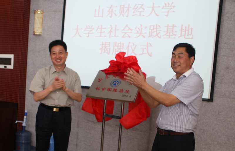 暑期社会实践团队全体师生以及垦利县开发区、财政局、国税局、地税局负责人参加揭牌仪式并座谈。