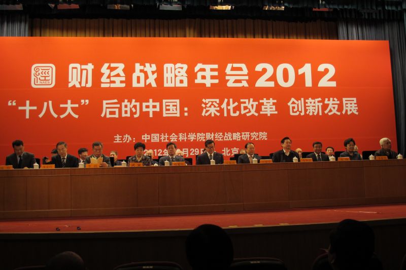 12月29日上午,以“十八大后的中国:深化改革 创新发展”为主题的由中国社会科学院财经战略研究院主办的财经战略年会2012在中国社科院社科会堂开幕。本次会议是中国社科院举行的首届财经战略年会。