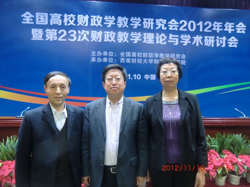 2012年11月10-11日,院长岳军、副院长朱德云、赵宇参加了全国高校财政学教学研究会2012年年会暨第23次财政学教学理论与学术研讨会。本次会议由西南财经大学财税学院承办,来自中央财经大学、中国人民大学、厦门大学、上海财经大学、东北财经大学、中南财经政法大学、财政部财科所等60余所高校、科研机构的120多名专家、学者出席了盛会。