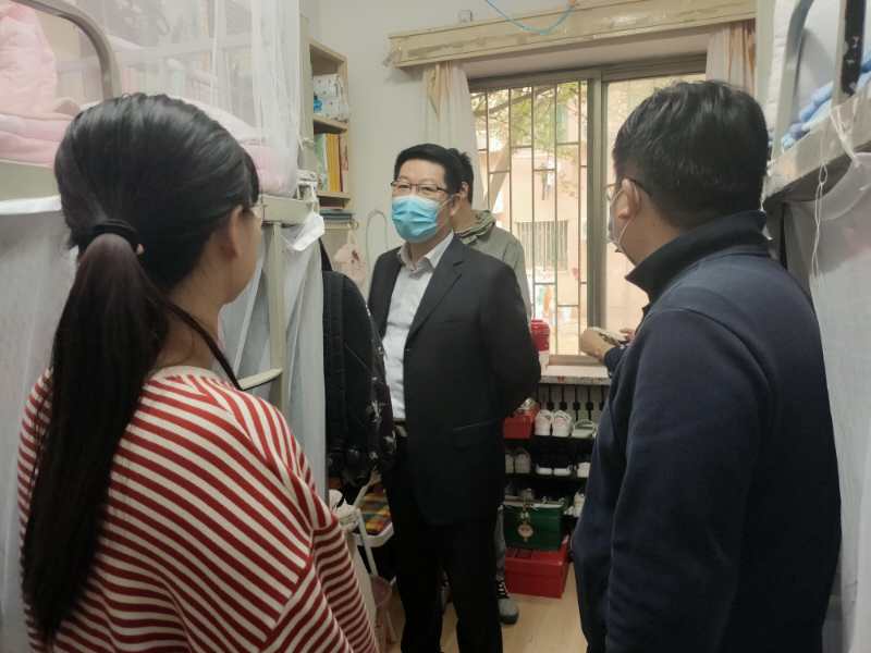 领导老师进入舜耕、圣井两校区宿舍楼,与学生们亲切交流,倾听学生的心声,了解学生的学习、生活及思想动态。在舜耕校区检查中,李玉成书记与一位新疆少数民族同学亲切交谈,关心少数民族同学在校的生活情况以及毕业后的就业方向。同时,他还了解了同学学习情况和考研、考公情况,并希望同学们在学习的同时还要养成健康生活的习惯。在圣井校区检查中,老师们认真负责地检查同学们生活用品的摆放情况、查看屋内电线线路,并询问同学关于安全用电、防盗防骗防火等日常生活中需要掌握的基本知识、基本技能方面的问题。老师们叮嘱大家:集体生活中,宿舍是共同的生活空间,宿舍的环境是每个成员生活习惯的集中体现,也必定会影响习惯的养成,打造干净整洁的宿舍环境是每个宿舍成员的义务。
