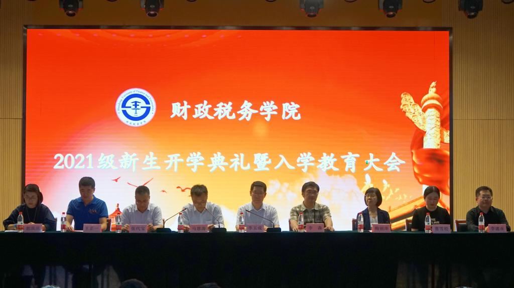 党委书记李玉成,院长马恩涛,税务硕士教育中心主任兼副院长李森,副书记张代宝、梅丽萍,财政系副主任曹雪姣,团委书记王正一,2021级辅导员郭滨滨、李建永出席了本次大会。2021级全体新生参加了本次大会,大会由张代宝主持。