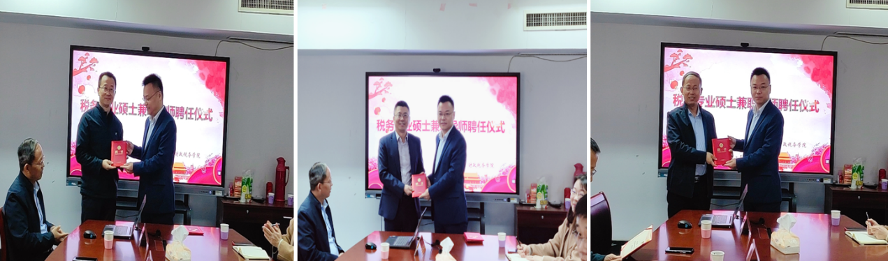 税务专硕兼职导师聘任仪式暨职业规划专题交流报告会在学院会议室举行。歌尔声学股份有限公司副总经理、董事会秘书贾军安,歌尔声学股份有限公司副总经理、财务总监李永志,以及山东百丞税务服务股份有限公司董事长朱自永等三位业界专家应邀出席,财税学院院长马恩涛教授、 税务硕士教育中心主任副院长李森教授、税务系主任郭健教授以及2021级税务专业硕士研究生参加了此次活动。