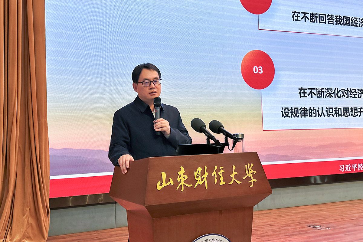 洪俊杰从习近平经济思想的形成发展、历史地位、理论贡献、实践意义、鲜明特征、重大意义等方面,为师生带来了一堂内涵丰富、思想深刻、贴合财经专业特色的专业启蒙课。他指出,习近平经济思想是习近平新时代中国特色社会主义思想的重要组成部分,是中国共产党不懈探索社会主义经济发展道路形成的宝贵思想结晶,更是推动我国经济高质量发展的科学指南,其形成标志着中国共产党对社会主义经济建设规律的认识达到新高度,为构建中国经济学自主知识体系奠定了坚实基础。