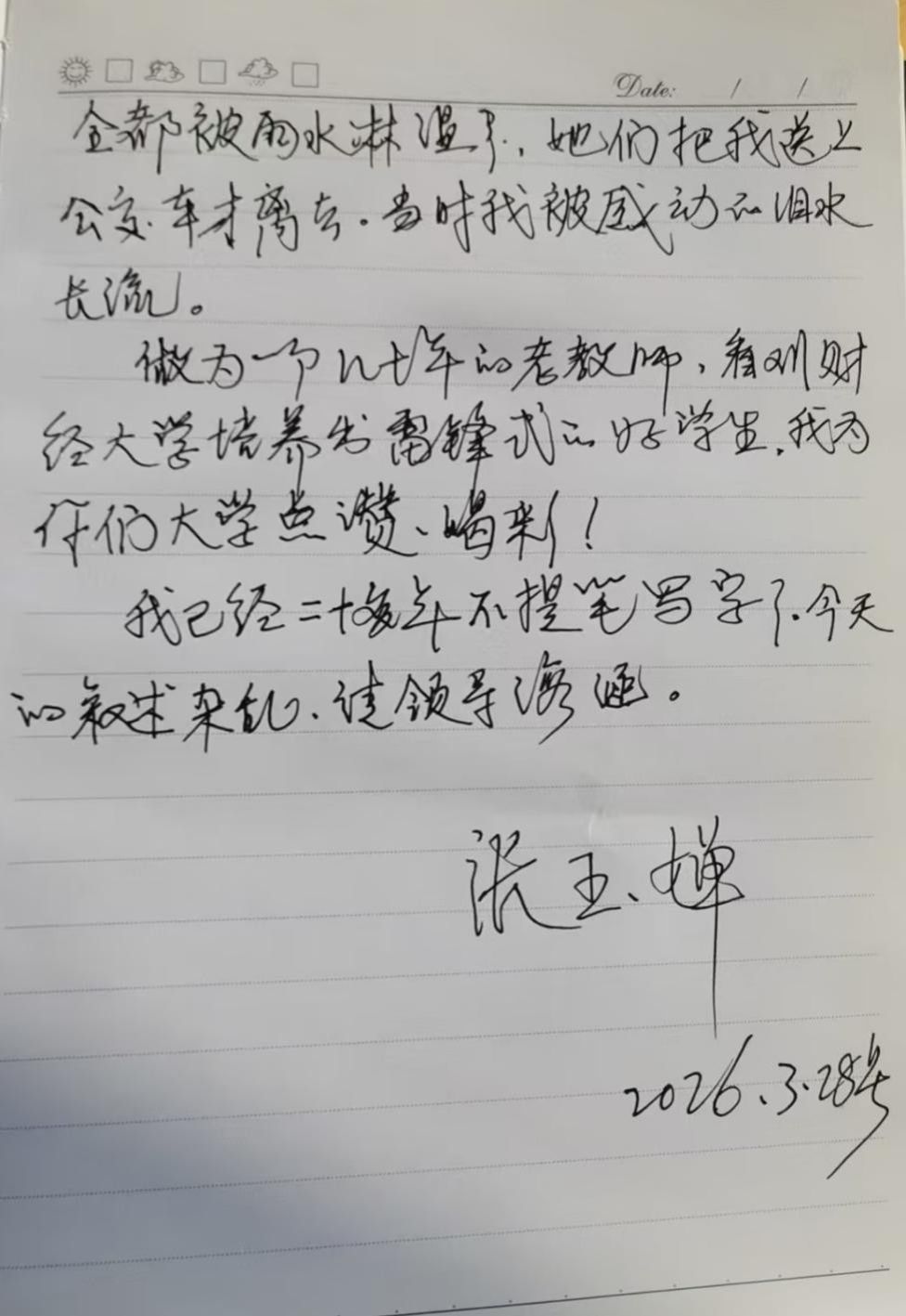 这封感谢信来自退休教师张玉婵。2025年9月27日,她独自前往山东警察学院看望孙子,途中遇雨又迷了路,向几人求助均未得到回应。焦急无助之际,她遇到了樱桃影视