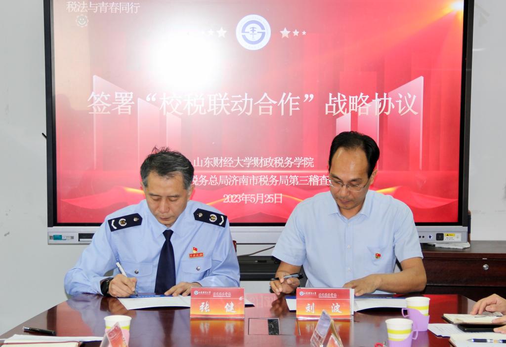 随后,刘波和张健共同签署了“校税联动合作”战略协议,并为“济南市税务局第三稽查局智慧税务实训基地”揭牌。郭健与赵宝廷分别介绍了青年科研攻关团队的分组情况和导师情况。滕晖和张倩为导师代表颁发聘书。