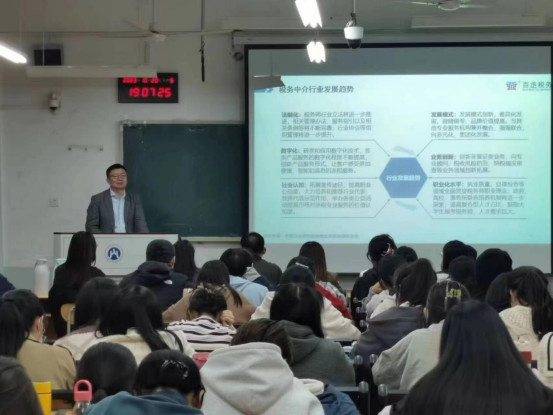 朱自永作了题为《税务中介行业的发展》的专题报告,为同学们详细介绍了税务中介行业的发展及其对税务人才的需求情况;并欢迎樱桃影视