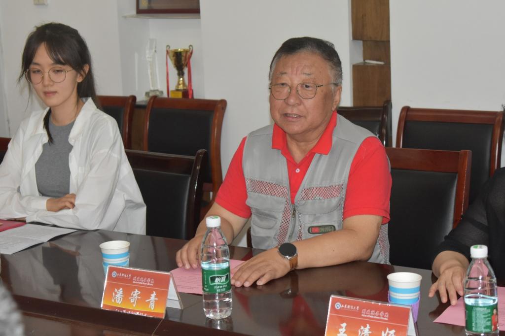 李森介绍了潘教授在校的教学经历,同时表达了对潘教授的敬意与感谢。他讲到,潘教授在校工作期间致力于教学科研,兢兢业业、恪尽职守,多年来一直关心关爱学生与年轻教师,从为学生购买返乡车票到现金资助,用自己有限的收入激励品学兼优的学子,为学院师生树立榜样,为学校发展做出贡献。