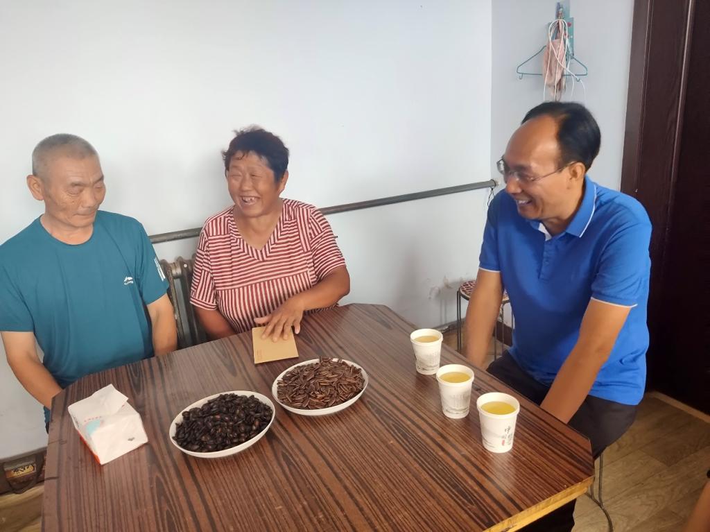 党委书记刘波、副书记滕晖,辅导员郭滨滨一行赴德州市德城区抬头寺镇王坤村进行暑期走访,送去慰问金及大米、面粉、花生油、牛奶等慰问品,切实将温暖和关怀送到贫困生心坎上。