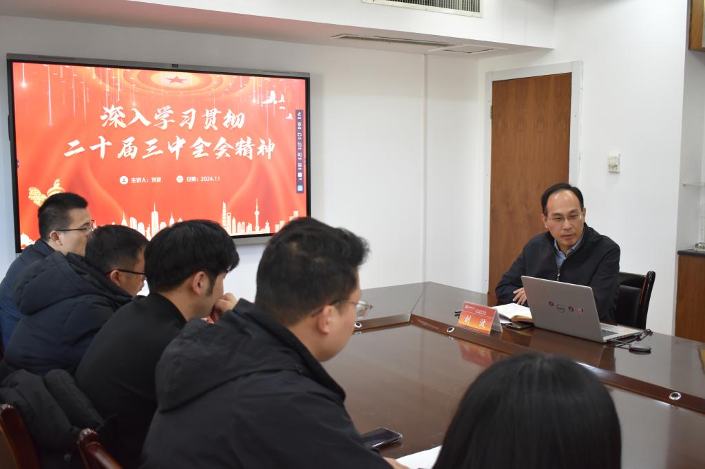 党委书记刘波在舜耕校区办公楼708会议室宣讲党的二十届三中全会精神。学院新聘任本科生班主任,教研室主任、副主任参加本次活动。