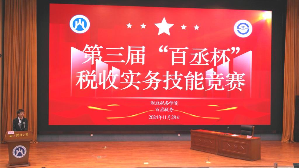 与山东百丞税务服务股份有限公司共同举办,具体分为线上入围赛、现场抢答赛和总决赛三个环节,旨在考察学生专业知识、实务技能、职业素养和综合能力,进一步激发师生参与财税专业教学改革的主动性和积极性,全面提高大学生税务技能和财经专业素养,为社会发展输送更多创新型和应用型人才。经过前期入围赛、抢答赛精彩激烈的角逐,16名同学成功晋级当晚总决赛。