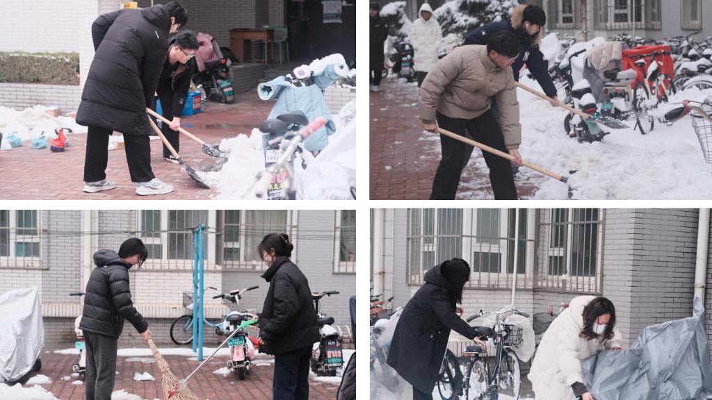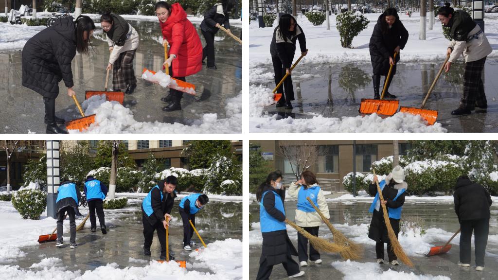迅速反应,组织师生在圣井校区开展校园扫雪除冰志愿服务活动,以实际行动践行雷锋精神,为校园安全出行保驾护航。