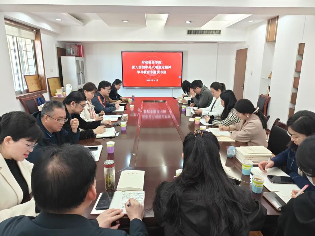 会上,与会人员首先观看了学校为各党委制作的“弘扬好作风 护航新征程”系列专题讲座第一讲。接着,杨海波教授就深入贯彻中央八项规定精神作了题为《深悟中央八项规定 以作风之坚筑复兴之基》专题讲座,结合历史事件回顾了党的作风建设的历史脉络。学院党委副书记张代宝、副院长赵宝廷、财政系主任曹雪姣、税收系主任宋颜群分别结合实际工作作了交流发言。