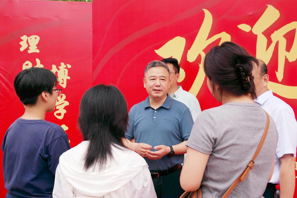 迎新现场,了解学院新生报到情况,与新生亲切交流,并与学院师生及新生家长合影留念。