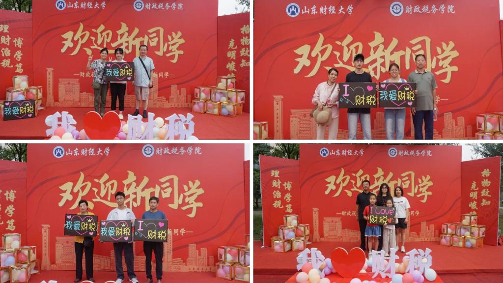 迎新现场,学院为新生精心准备了定制姓名牌、专属可乐和财税团扇,于细节中传递出浓浓的关怀与祝福。志愿者们主动帮助搬运行李、耐心解答疑问,他们用热情洋溢的笑容与贴心的服务,让初来乍到的新生们第一时间感受到学院的温暖与活力。学院特别设置了合影留念区,志愿者主动为新生及家长拍摄合照,记录他们踏入大学的珍贵瞬间。