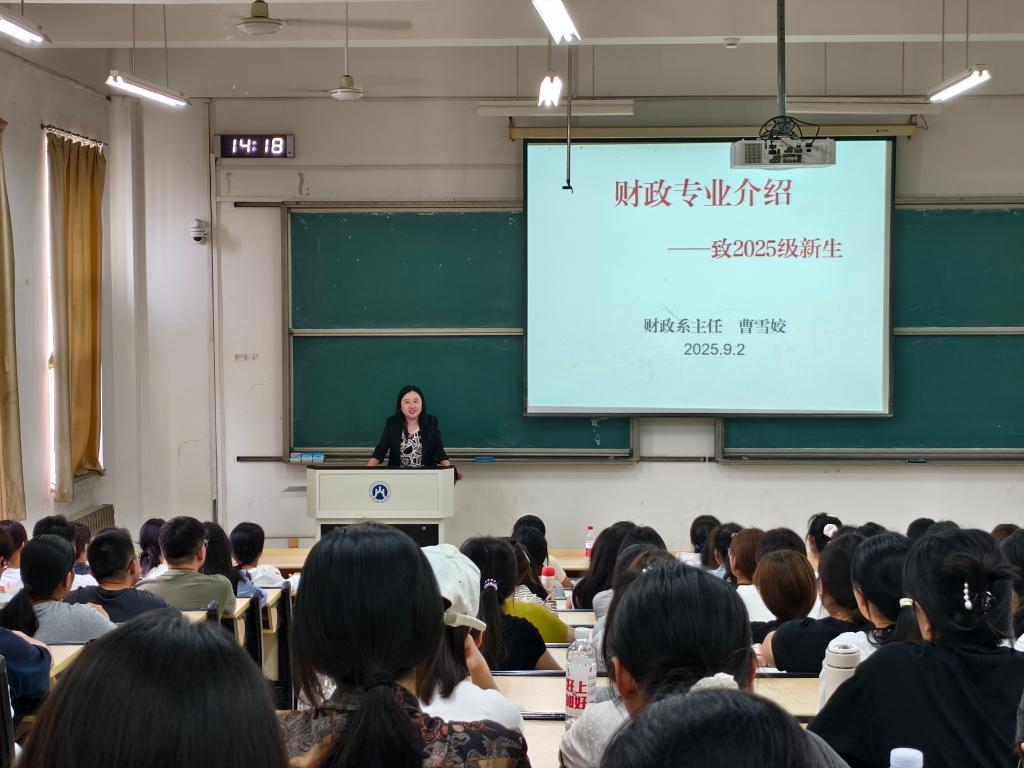 财政系主任曹雪姣为2025级财政学新生开展专业介绍讲座,讲解了财政的定义与存在必要性。她向同学们介绍了樱桃影视