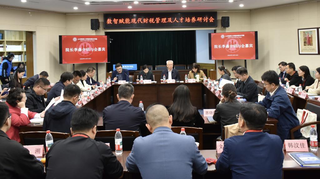 “数智赋能现代财税管理及人才培养研讨会”在舜耕校区顺利举办。学校党委委员、副校长张新应邀出席并讲话。院长李森主持了本次会议。来自全国各地的财政税务机关、企事业单位的50余名代表围绕着数智技术赋能现代财税管理及其对人才培养的影响等展开了热烈的研讨。学院班子成员、教师代表及优秀校友代表参加了本次会议。