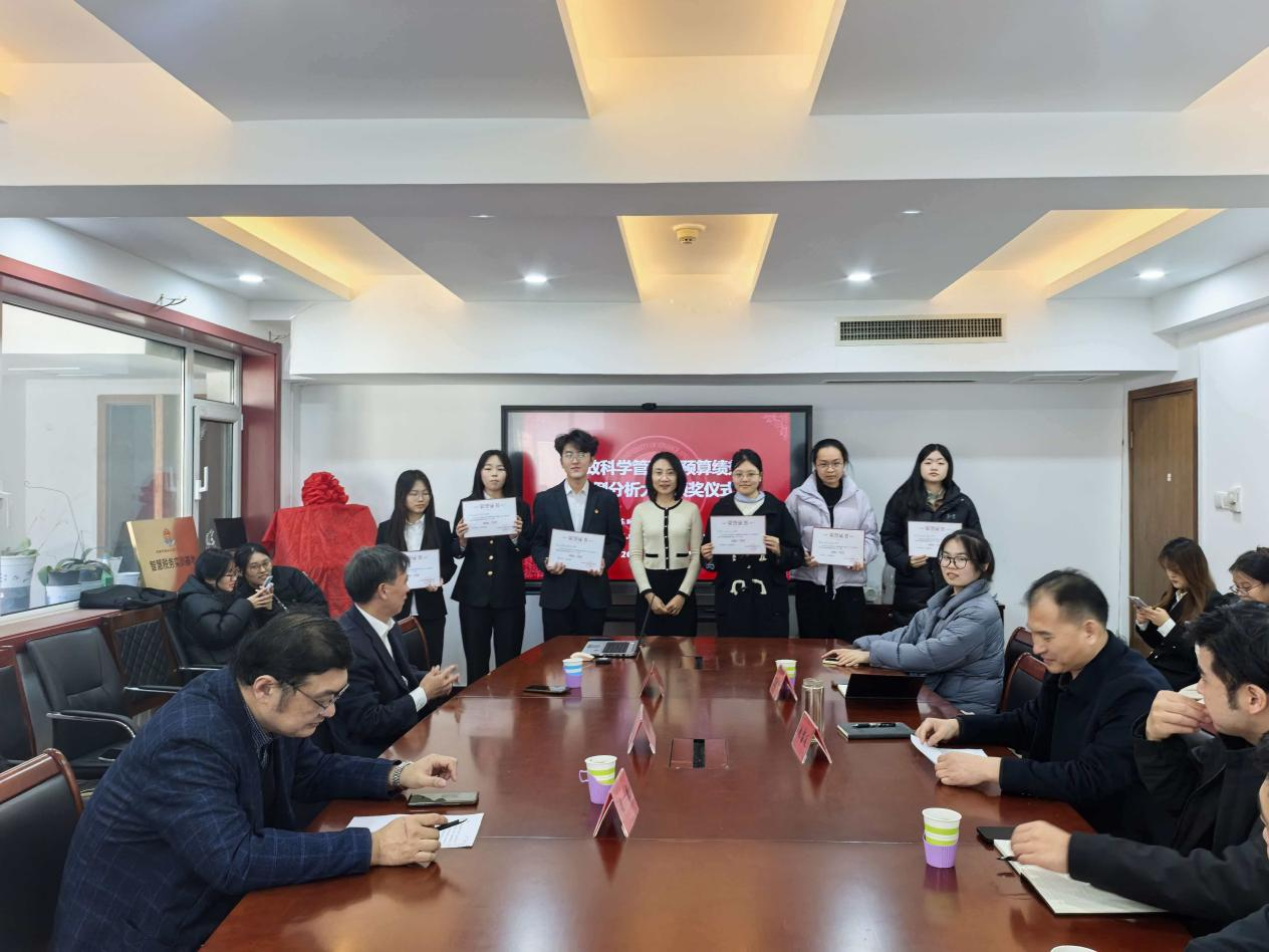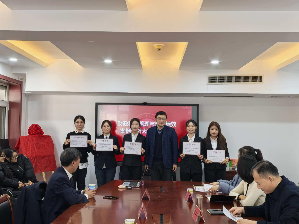 在答辩阶段,评委们针对汇报内容现场提问并给予改进建议等,选手们认真回答了评委的提问。经过激烈角逐,最终评选出一等奖1组、二等奖2组、三等奖3组、参与奖6名,详见附录。评委们对同学们的精彩表现给予了高度评价,并鼓励大家以该项比赛为契机,持续深化对财政科学管理的理解,将理论知识转化为实践能力,为将来投身财政事业奠定坚实基础。随后,李森与评委专家为获奖团队颁奖。