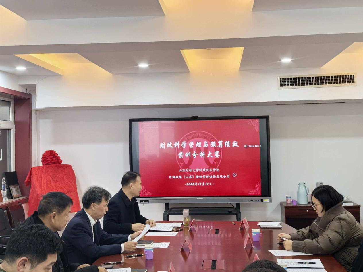 (舜耕校区)顺利举办。该项比赛面向在校本科生与研究生。大赛组委会邀请了地方财政部门的管理人员、高校财政学专业的教师、财政绩效评价第三方公司的项目经理等三方面的专家担任决赛评委和点评专家。学院院长李森、副院长赵宝廷,张晓蕾等教师代表参加了本次活动。