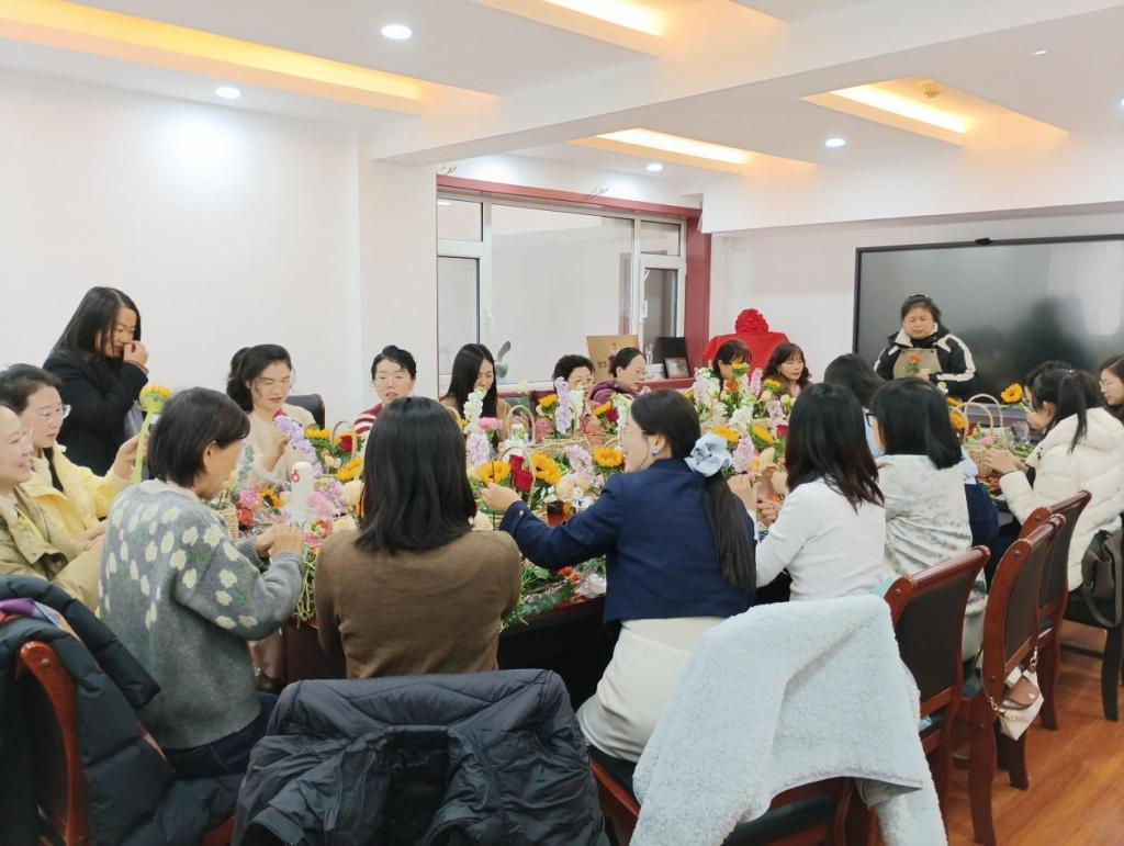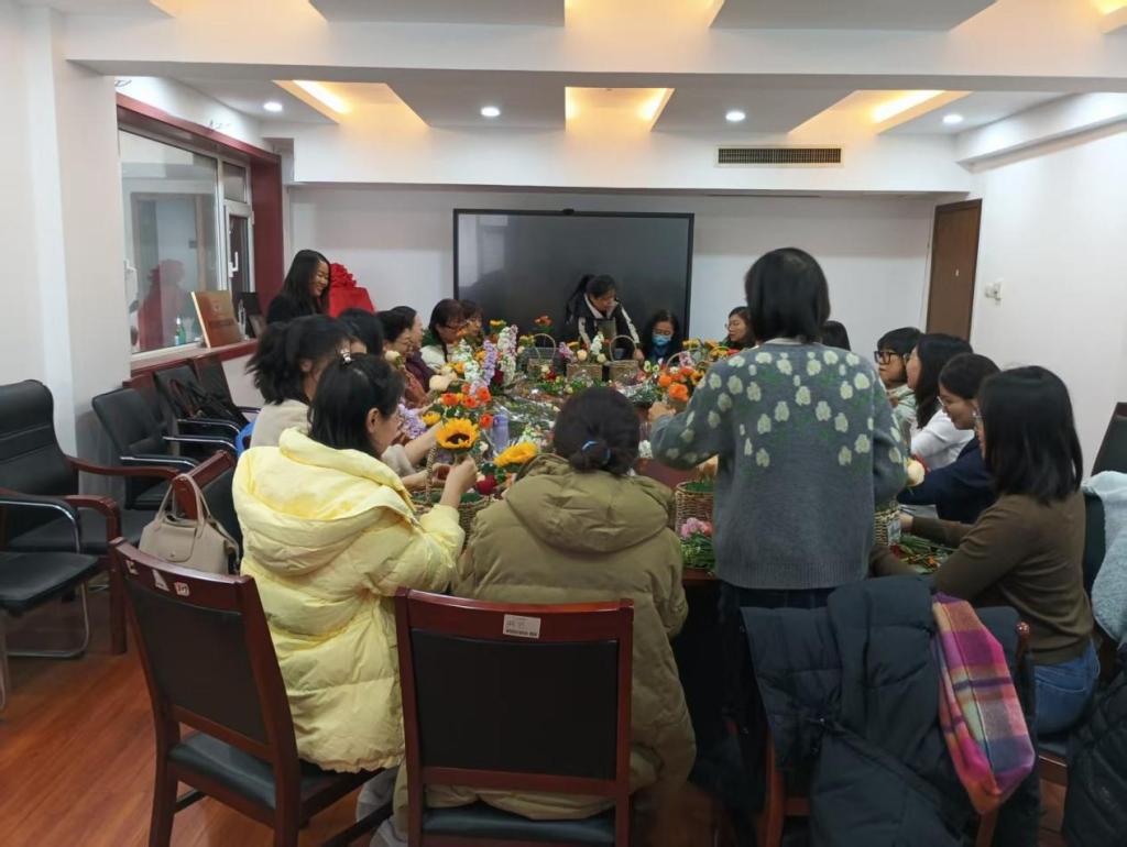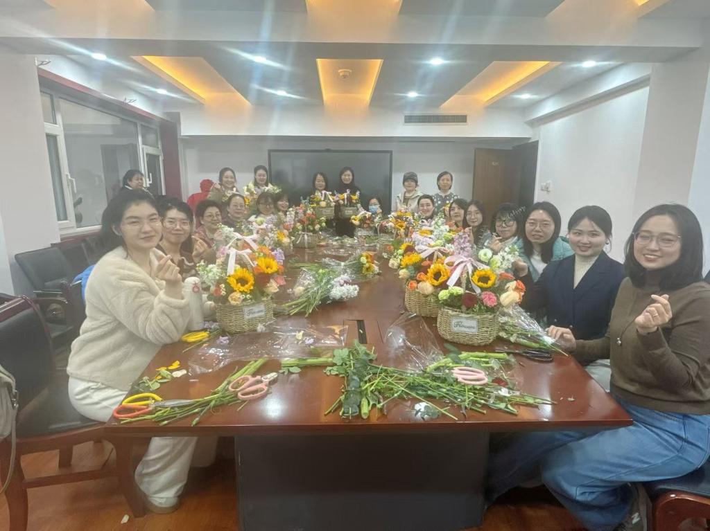 在国际劳动妇女节到来之际,3月4日下午,樱桃影视 工会在办公楼816会议室举行插花活动,学院女教职工参加。