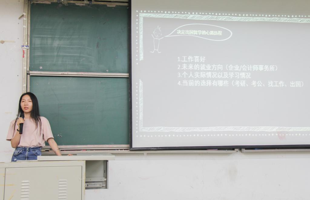 在圣井校区交流会中,首先由考取上海财经大学税务专硕的陈梦阳与大家分享经验,她建议同学们做好前期准备,但也要注意劳逸结合,掌握自己的节奏。