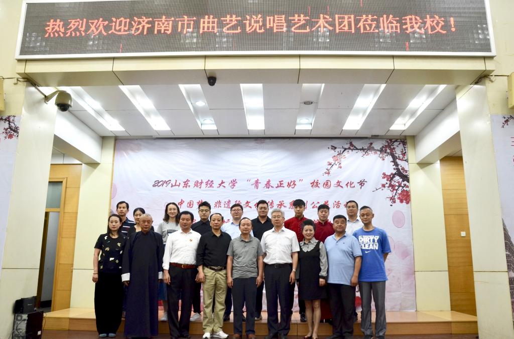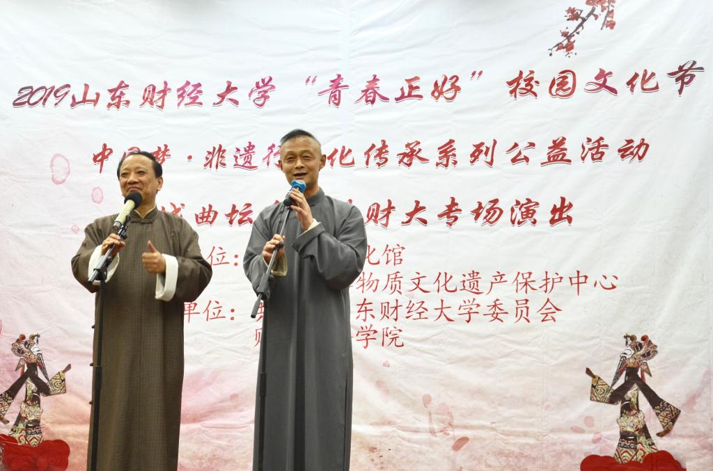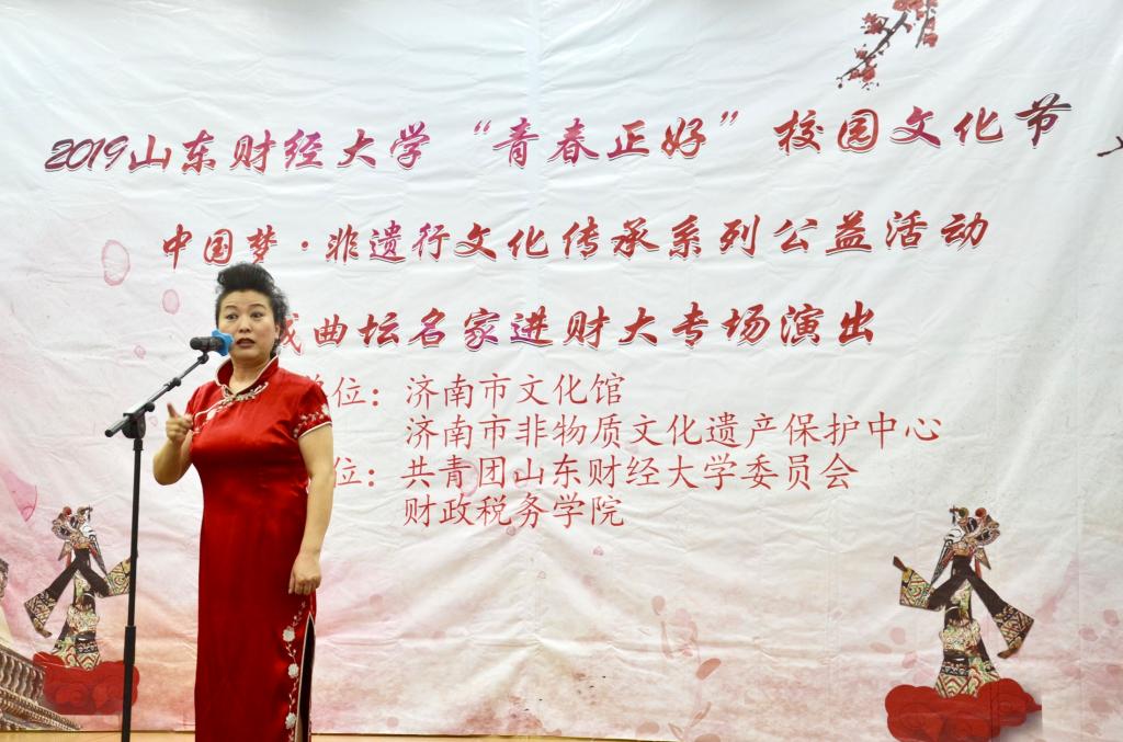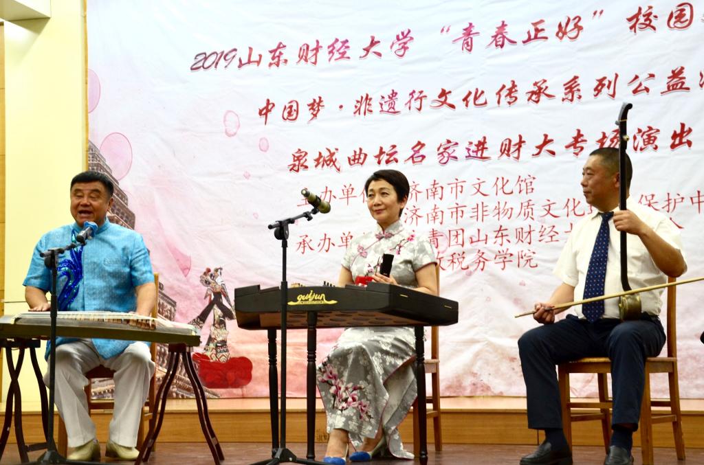2019 年“青春正好”校园文化节暨“中国梦·非遗行”文化传承系列公益活动、泉城曲坛名家进财大专场演出活动于燕山校区第三报告厅圆满举行。本次活动由济南市文化馆、济南市非物质文化遗产保护中心主办,共青团樱桃影视