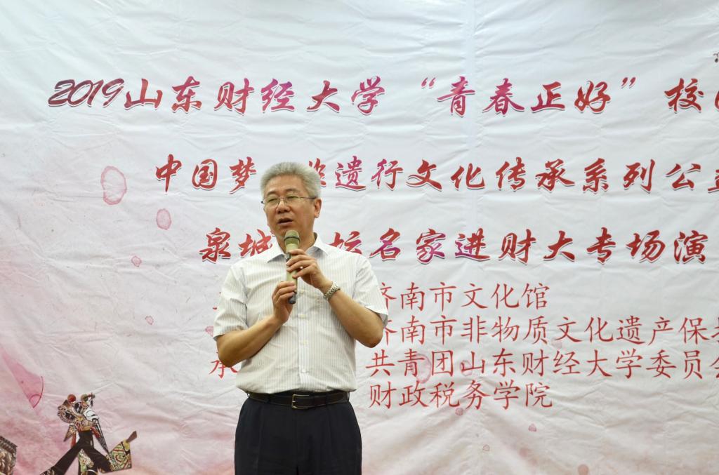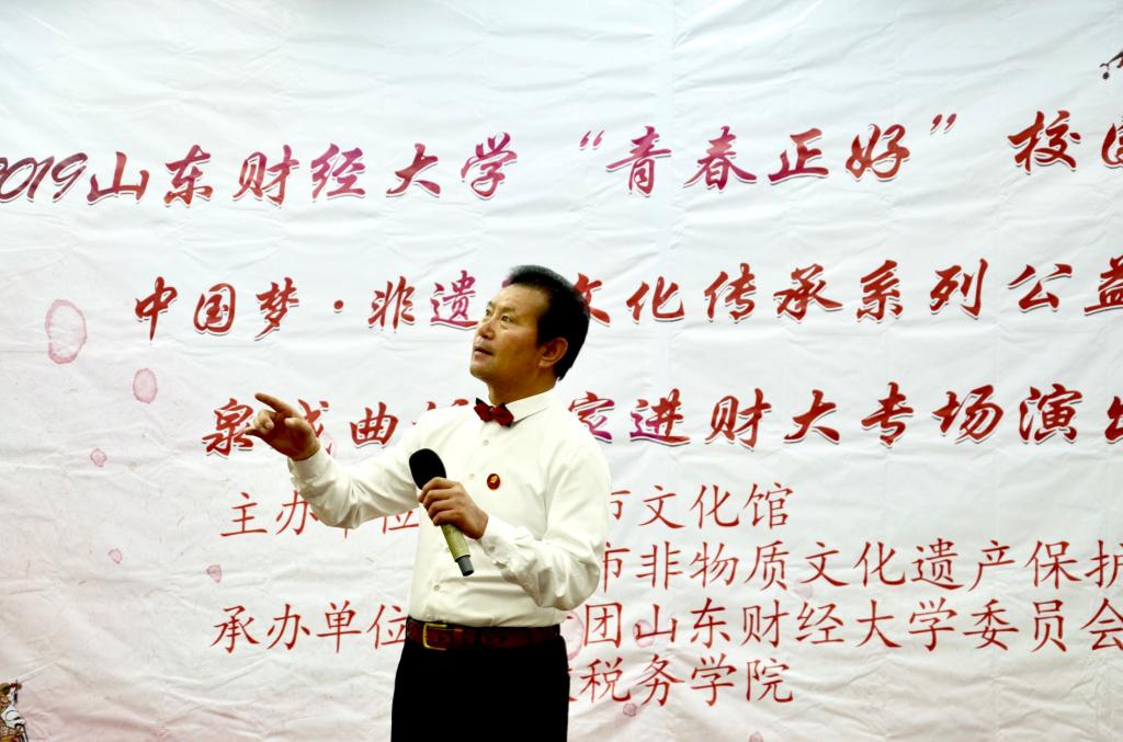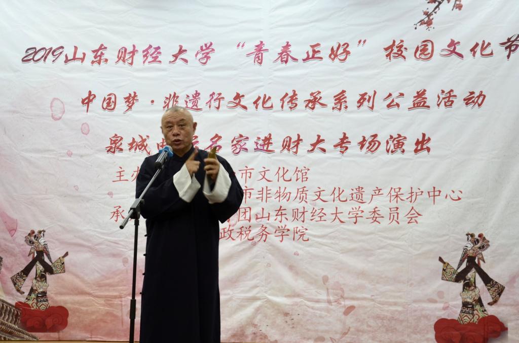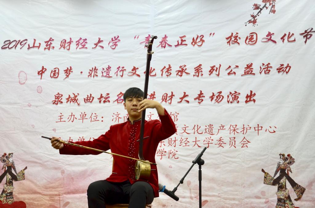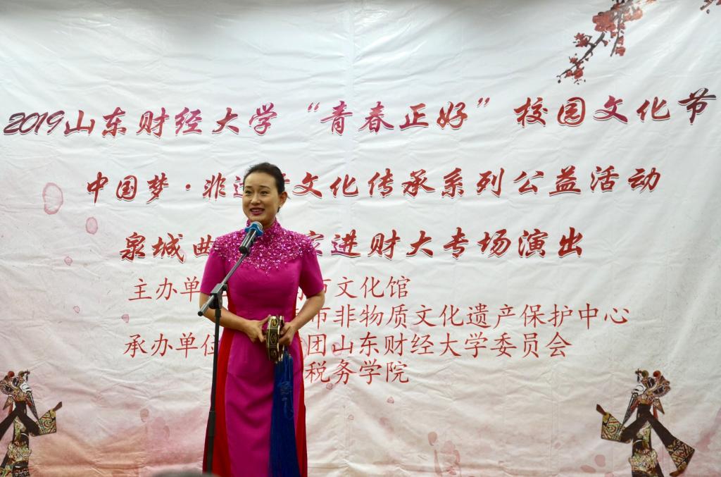 2019 年“青春正好”校园文化节暨“中国梦·非遗行”文化传承系列公益活动、泉城曲坛名家进财大专场演出活动于燕山校区第三报告厅圆满举行。本次活动由济南市文化馆、济南市非物质文化遗产保护中心主办,共青团樱桃影视