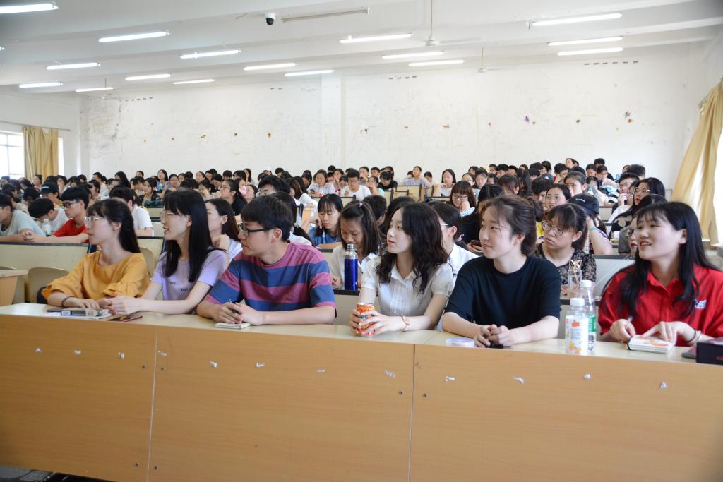 第二个进行分享的学生代表是考取了中国人民大学的宋鹏飞。她的分享分为三个方面,首先,她讲述了自己考研的初心,又从反面提出为了逃避就业而考研,盲目从众地去考研,考研时过度自大、过度自卑这几种错误的心态。接着,她介绍了人大实力及美景,又以自身为例,提醒同学们应该按照自己的情况选择适合自己的院校,要找到适合自己备考方法。最后,她提出身处大一大二的同学们应当先确定好目标,学好本科课程,找到自己的兴趣所在,并且要注意英语口语的学习。