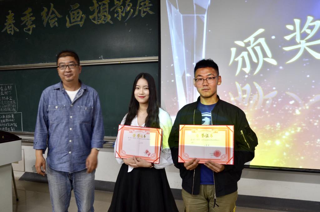 活动最后,综合了微信投票结果和评委们的评审结果,齐哲浩同学荣获一等奖和最佳人气奖,苟舒娴和宋荣欣同学荣获二等奖,王志勇、朱晗瑶、庞奕萱同学荣获三等奖。王志勇同学凭借他极富想象力的创作获得了最佳创意奖。武普照老师、张建勇老师、王正一老师分别为获得一、二、三等奖的选手颁奖。学生会新媒体中心主任郑昊晨、第一届绘画摄影展最佳创意奖得主刘畅分别为获得最佳人气奖和最佳创意奖的同学颁奖。