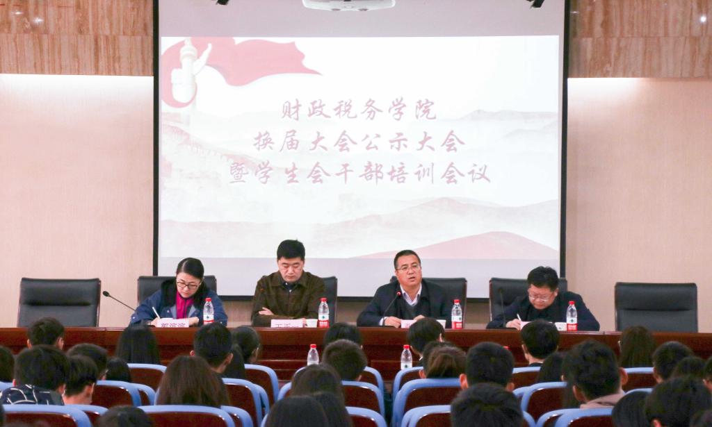 主办,学生会秘书处承办。学院党委副书记张代宝,团委书记、2018级税收学辅导员王正一,2017级财政学辅导员郭滨滨,2017级税收学辅导员李建永出席了本次会议,会议由王正一老师主持。2018届学生会主席彭玉琢、2017级部分学生干部和2018级全体学生干部参加了本次会议。