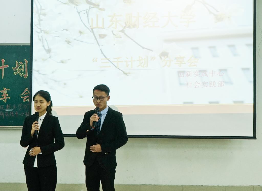本次分享会中两位同学的精彩分享鼓励了2018级学生在学好理论知识的同时,也要积极投身到社会实践中去。期待新一级财税学子们在未来“三千计划”的实践活动中能够吸取上一级同学的经验,青出于蓝胜于蓝,再创傲人的成绩。(通讯员:邢雯静摄影:冯雨晨)
