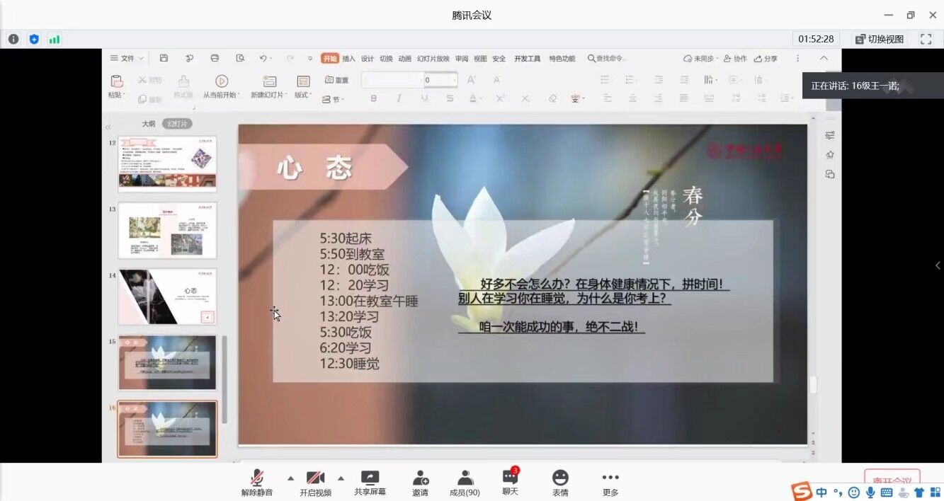 主办,院学生会学习部承办,利用“腾讯会议”平台分两场开展。2016级考研成绩优异的同学受邀出席本次会议,2017级有考研意向的同学参加本次会议。
