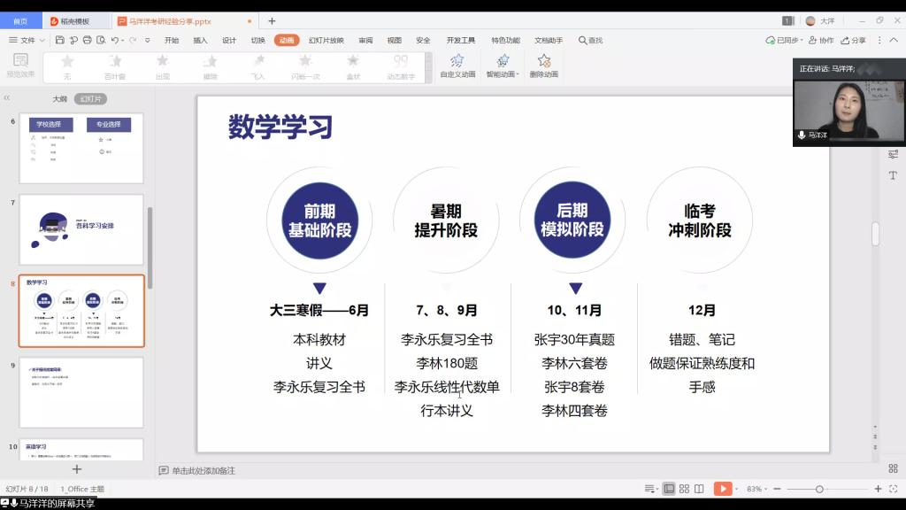 本次活动旨在为备战考研的同学分享考研经验与方法,为同学们的漫漫考研路指明方向和奋斗目标,帮助同学们进一步提升自己、实现梦想。活动伊始,主持人介绍了本次活动的流程及具体内容。随后,受邀同学依次分享了他们的心得体会。