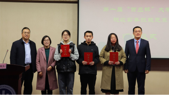 比赛过程中,参赛选手们沉着冷静、一丝不苟,对税收基本理论、我国税收制度现状、未来财税改革方向和具体完善措施等知识烂熟于心,作答自如,赢得了评委老师和同学们的阵阵掌声,展现了财税学子们严谨踏实的专业素养、扎实娴熟的操作技能和昂扬向上的精神风貌。伴随着选手们一下午的精彩较量,比赛进入尾声。颁奖典礼上,百丞税务合伙人田峥峥女士从专业视角对选手们的表现逐一进行了精彩点评,并宣布最终获奖名单。在热烈的掌声中,莅临现场的各位领导、专家评委亲自给荣获一、二、三等奖的选手们颁发荣誉证书。在大家的热烈掌声中,比赛圆满落下帷幕。