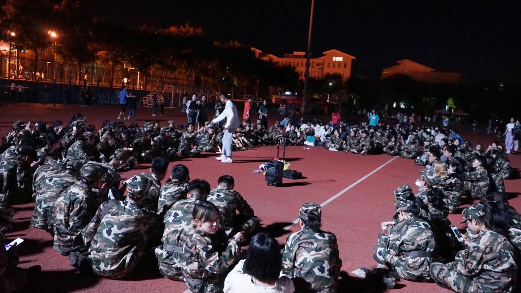 9月21日,正值中秋佳节,2021级新生们在结束了一天的军训项目后,来到操场与学长学姐们共庆中秋。大家围坐在操场上,2021级的同学们争相报名表演节目,有的同学带来了自己的吉他,优美的旋律在操场上飘扬;有的同学表演了一段舞蹈,曼妙的舞姿将联谊的气氛推向高潮。面对如此活跃的气氛,学长学姐们也情不自禁的加入了联谊,一位学长即兴表演了一段快板;来自学院艺术团的学长学姐们表演的舞蹈获得了阵阵欢呼,2021级的同学们挥舞着手中的荧光棒表达着自己心中的喜悦与激动,掌声一阵高过一阵。