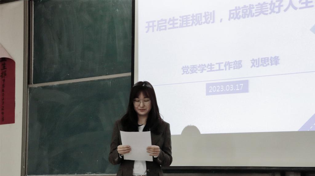 党委学生工作部副部长刘思锋为同学们带来一场题为“开启生涯规划,成就美好人生”的生涯规划主题讲座。本次活动在圣井校区弘毅楼111教室圆满举行,讲座由刘思锋副部长主讲,李子云老师主持,2022级部分学生代表参加本次讲座。