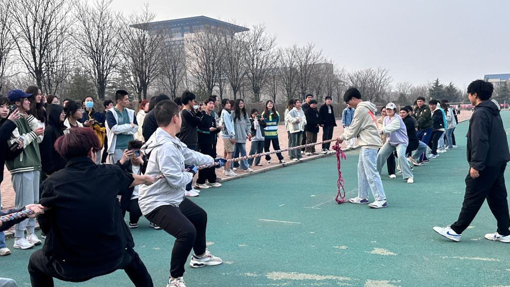 拔河比赛时,学子们凝神聚力、全力以赴,拼命拖拽拔河绳。他们在赛场上奋力拼搏,用汗水和努力诠释团结的力量,充分彰显财税学子的青春风采。